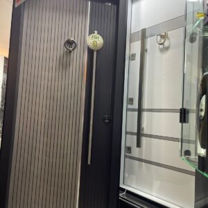 باب تركى ماركة تراست ( New Edition ) رمادى فاتح ليزر ف أسود ليزر عدد 4 كالون مقاس 1 م سنتر لوك ماركة هوك
