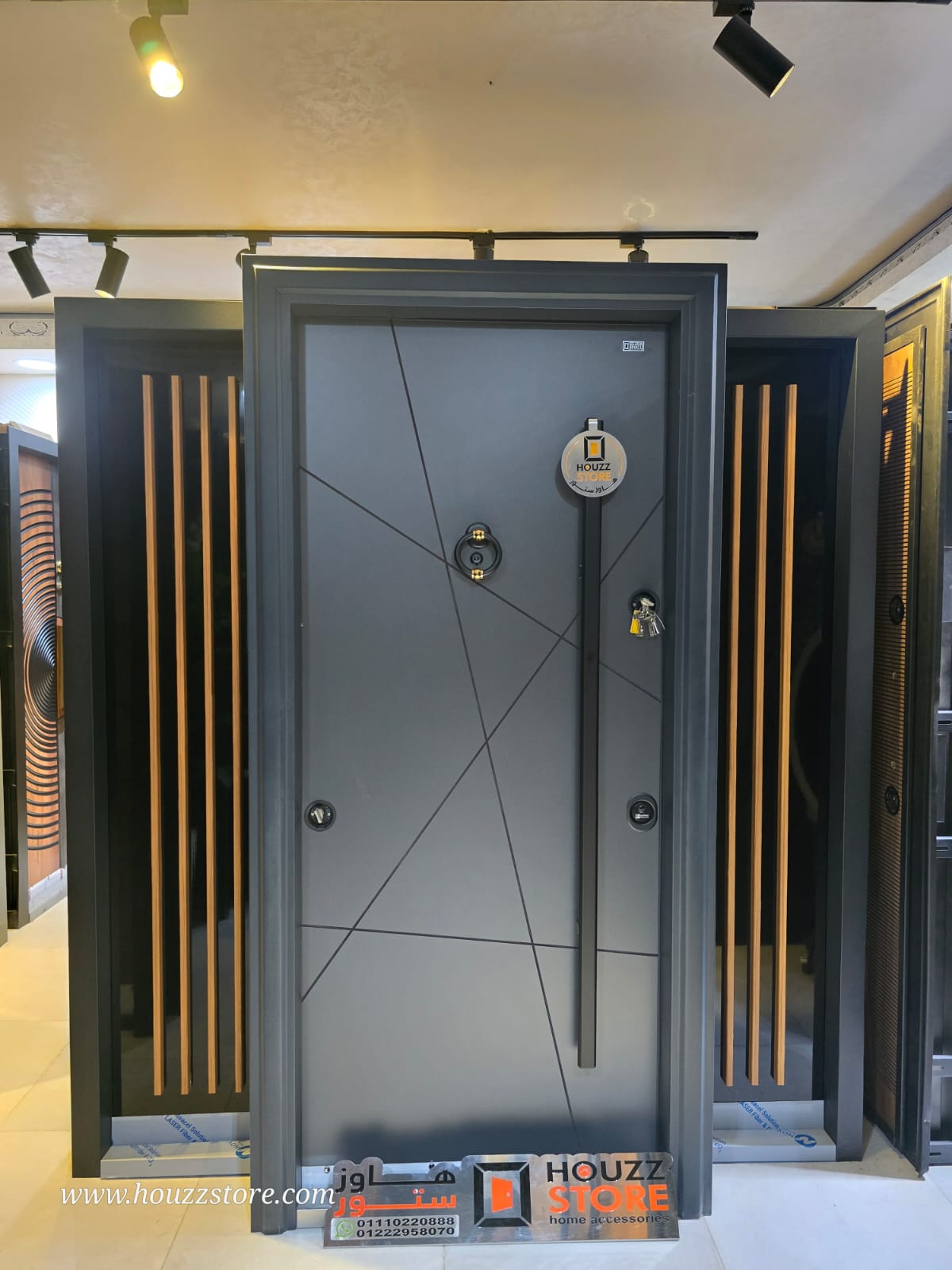 باب تركى مستورد ضمان هاوز ستور رمادى في خشبي سمبوكسات 4 كالون مقاس 1 م