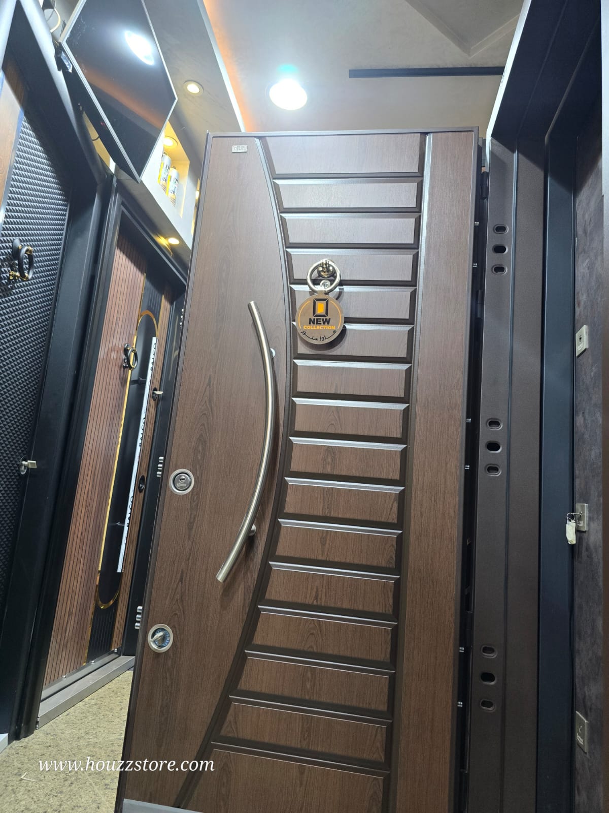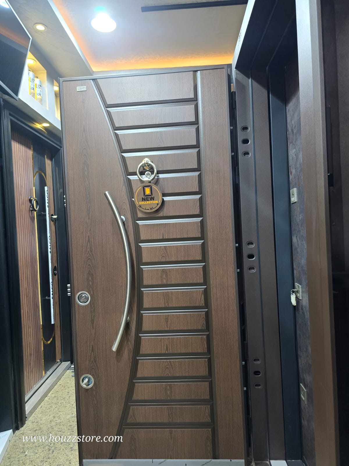 باب تركى مستورد ضمان هاوز ستور أسمر في خشبي بشريحة أسمر بفاصل جولد 4 كالون مقاس 1 م