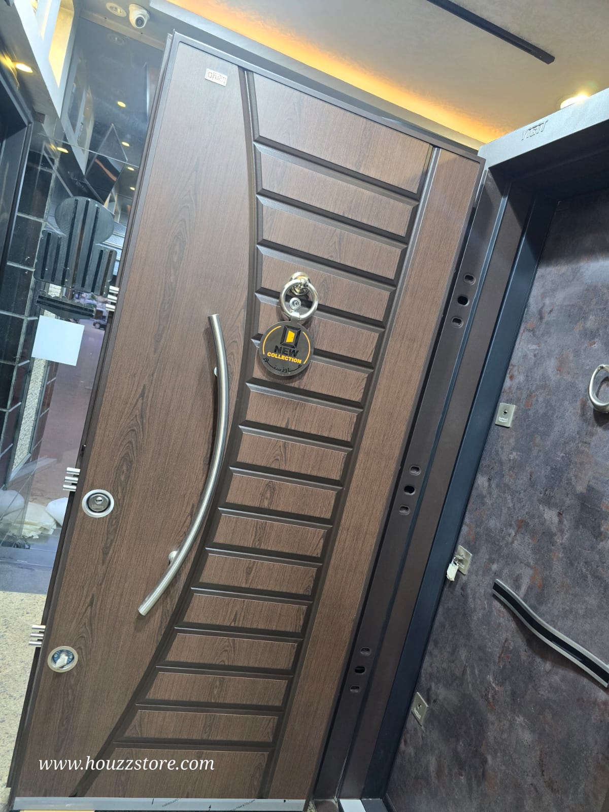 باب تركى أستيراد بضمان هاوز ستور خشبي ف جراى ماتريكس عدد 4 كالون هوك مقاس 1م – حلق مجسم بار خارجى